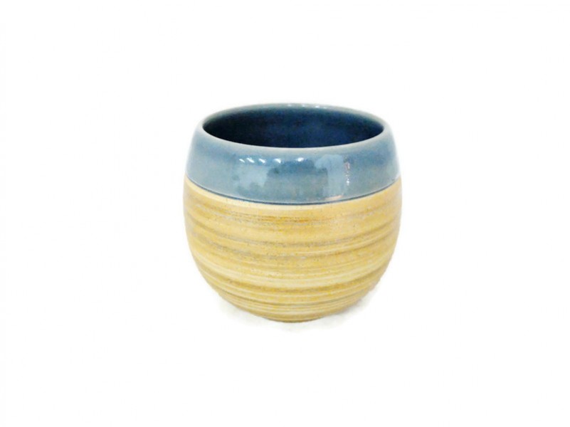 แก้วน้ำชา แก้วชา แก้วน้ำ ทรงกลมใหญ่ งานดีไซน์หลากสี เคลือบศิลาดลสีน้ำเงิน