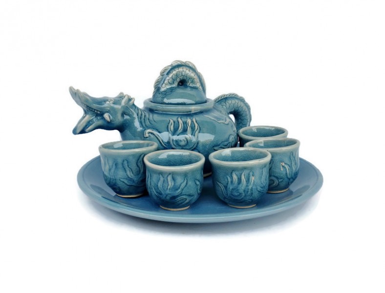 ชุดน้ำชา ชุดชา กาน้ำชา แก้วชา ชาจีน ชุดชามังกร เคลือบสีน้ำเงิน