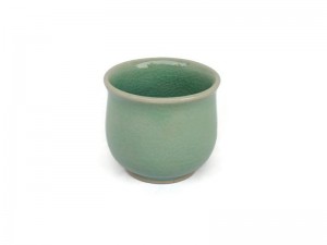 แก้วน้ำชาจีน เนื้อเรียบ เนื้อศิลาดล ถาดรองวงรีใหญ่ ศิลาดลเคลือบสีเขียว