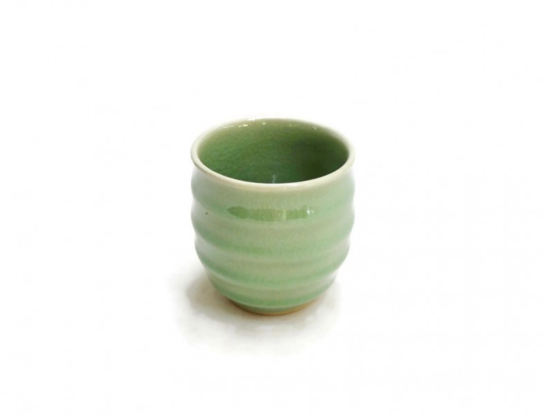 แก้วน้ำศิลาดลทรงคลื่น เนื้อเรียบ ศิลาดลสีเขียว