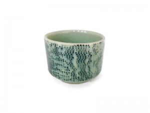 แก้วน้ำชา แก้วชา แก้วน้ำ ศิลาดล งานปราณีตด้วยดีไซน์ลายลูกไม้ เคลือบศิลาดล สีเขียวจากขึ้เถ้าไม้